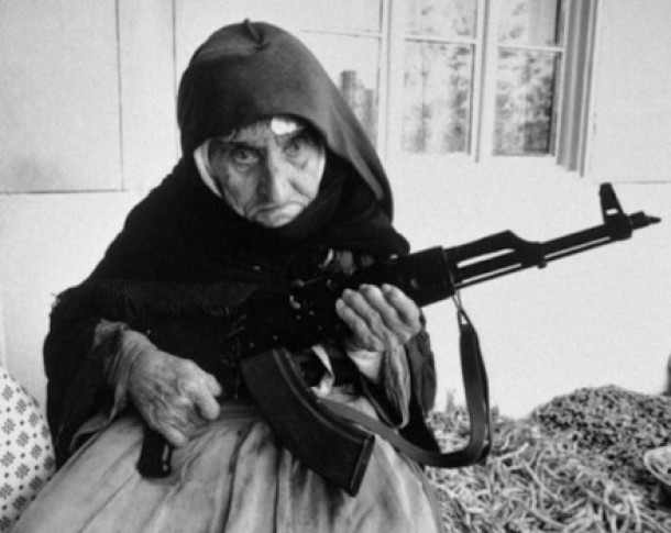 4. O femeie din Armenia (foto sus), in varsta de 106 ani, sta pregatita sa isi apere casa in timpul pogromului din Azerbaidjan.