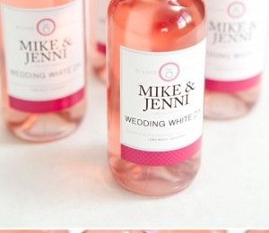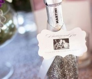 Dacă ai un buget generos, surprinde-ţi invitaţii cu câte o sticlă de vin sau şampanie personalizată. Aceasta poate avea fie un abţibild cu un mesaj amuzant, fie o fotografie cu mirii.