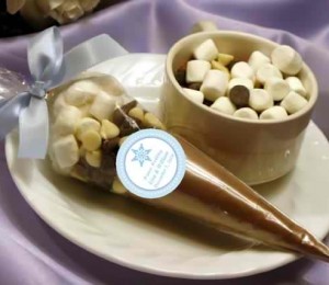 O pungă de hârtie personalizată cu datele nunţii voastre, în care invitaţii să îşi pună la plecare prăjituri de la candy-bar, te va scuti de o cheltuială prea mare şi te va asigura că toate prăjiturile sunt mâncate.