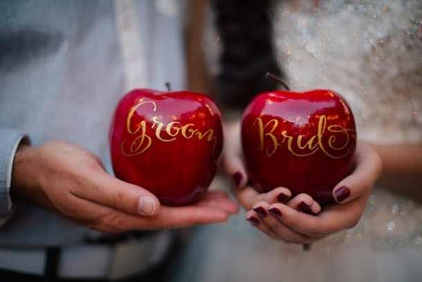 Mai ales dacă nunta are loc toamna și preferi să ai mere prin jur în loc de flori, poți ține masa într-o livadă sau să-ți faci ședința foto printre meri, iar dacă nunta are loc primăvara, la fel crengile merilor înfloriți vor crea poze superbe. De asemenea, mai poți include atât crengi de meri înfloriți cât și mici mere în buchetul tău special de mireasă.