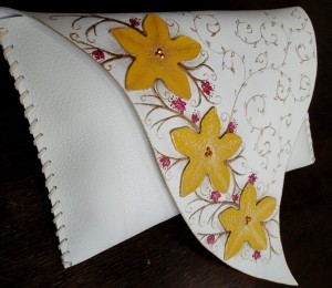 Este un plic handmade unicat, confecţionat cu aplicaţii decupate şi pictate manual în culori speciale, căptuşit şi cu închidere capsă magnetică. Acest plic este ideal pentru miresele care fac nuntă vara, undeva în aer liber, departe de agitaţia oraşului.