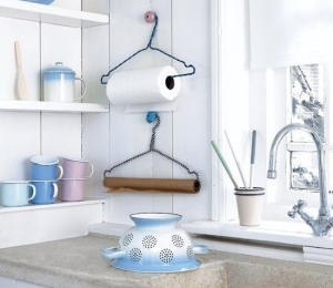 Te împiedici mereu de rola de prosop de hârtie pe care o ţii pe blatul de la bucătărie? Ei bine, poate că ar fi o idee bună să improvizezi un suport de perete pentru aceasta. Umeraşele, fie ele din plastic, fie din metal, pot fi agăţate pe perete pentru a servi drept suport de prosop de hârtie.