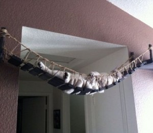Tot la capitolul "joaca", designerii au fost foarte ingeniosi si au creat un copac decorativ in care pisica se poate urca nestingherita; o alta creatie este un pod inspirat din filmele cu "Indiana Jones", care poate fi amplasat deasupra usii - un loc ideal de joaca pentru felina ta.