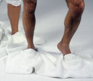 Covor pentru baie cu compartiment pentru picioare, care să îi ţină de cald când iese de la duş