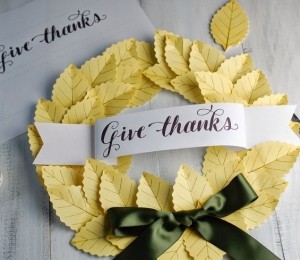 Dacă nu ai de unde să faci rost de frunze uscate, nu ar fi o idee rea să creezi frunze din hârtie. De asemenea, poţi adăuga un mesaj de întâmpinare pe care să îl prinzi de coroniţa cu frunze.