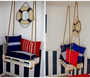 Tot din paleţi poţi face şi un leagăn, fie pentru cei mici, fie, pur şi simplu, decorativ. Ai nevoie de un palet şi câţiva metri de sfoară.