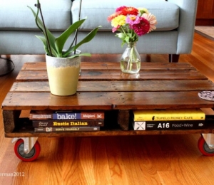 Ai nevoie de o măsuţă de cafea? Un palet, 4 roţi şi puţină vopsea şi te asigur că vei avea cea mai cool masă de cafea.