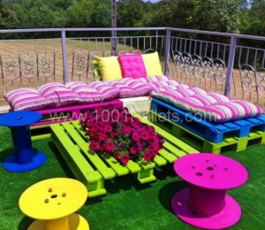 Câţiva paleţi, o saltea şi nişte perne şi ai obţinut o canapea cool pentru livingul tău sau chiar pentru grădină. De asemenea, poţi folosi paleţii şi pe post de cadru de pat.