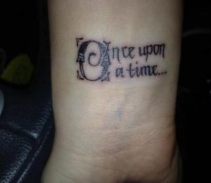Tatuajele de mai jos reprezinta nu doar carti, ci si formule consacrate, de genul "A fost odata ca niciodata..." (Once upon a time). Iar daca ti-au placut cartile din seria Amurg (Twilight), nu te opreste nimic sa iti faci un tatuaj cu titlul cartii preferate.