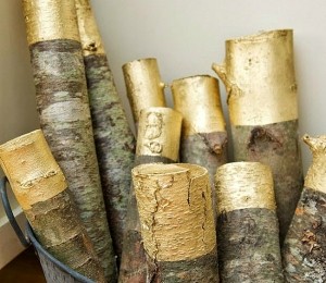 Dacă ai un şemineu în care faci foc pentru a te încălzi în zilele ploioase, poate vrei să îi dai mai multă culoare şi un aspect elegant amenajând un colţ plin de căldură cu ajutorul unui coş din ratan plin cu lemne vopsite cu auriu.