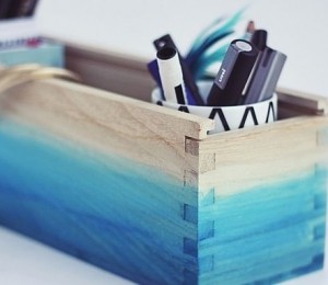 Dacă ai din întâmplare o cutie din lemn de la rummy, de pe vremea când erai în liceu şi te jucai cu prietenii, creează-ţi un suport special pentru pixuri. Colorează cutia din lemn cu acuarele, în orice nuanţe doreşti, iar suportul pentru pixuri este gata pentru a fi aşezat pe birou.