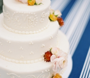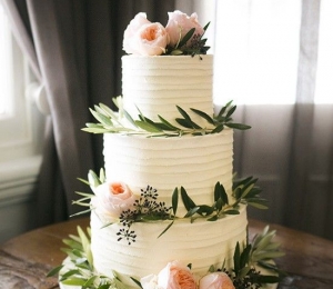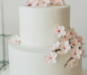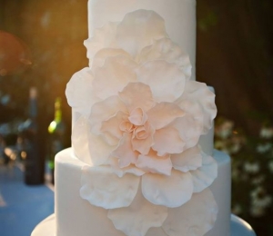 Torturile de nuntă albe, îmbrăcate complet în marţipan şi accesorizate cu flori naturale ori tot din marţipan sunt pe val în 2016. Acestea sunt simple, dar de efect.