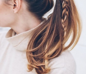 O banală coadă de cal poate fi transformată într-una WOW prin adăugarea unei împletituri. Tot ce trebuie să faci este să îţi împleteşti o şuviţă pe o parte, deasupra urechii, pe care să o introduci apoi în coada de cal, ca în imaginea de mai jos.