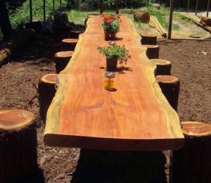 Mobilierul rustic este nemaipomenit şi merită adăugat în decorul oricărei grădini. Nu trebuie să dai foarte mulţi bani pe mobilierul de grădină. Fă-i o vizită tâmplarului tău şi roagă-l să-ţi facă nişte scaune din trunchi de copac şi o masă suficient de mare încât să încapă toată familia şi prietenii care vin în vizită.