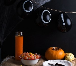 Adaugă o atingere de Halloween cu ajutorul unor baloane personalizate mesei la care te vei aşeza împreună cu familia sau prietenii. Pentru a decora baloanele ai nevoie doar de un marker negru. Cu nişte baloane negre, poţi crea un mesaj de întâmpinare pentru oaspeţi. Trebuie doar să scrii cu alb mesajul "înfricoşător".