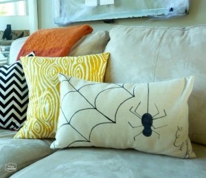 Poţi decora chiar şi pernele din casă. Pe unele le poţi picta cu păianjeni, altora le poţi desena ochi sau pur şi simplu le poţi transforma în mumii cu doar câteva pansamente şi un marker.