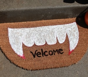 Nici uşa de la intrare nu trebuie să treacă neobservată. Decupează din hârtie neagră câţiva lilieci şi lipeşte-i de uşă, iar în faţa uşii aşază un covor negru pictat cu pânză de păianjen.