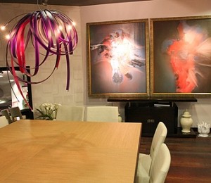 Un elegant cadou pentru doamne: decor pentru masa din bambus cu o lumanare mare si floare, un pandant pe snur de catifea din ametist intr-o frumoasa cutiuta lila, insotite de o carte de vizita din ciocolata personalizata cu mesaj pentru doamne, 45 ron, de la Choco Gift.