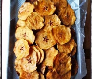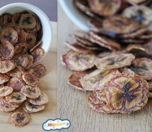 Banana - ce spui de niste chipsuri dulci facute din banane? Taie banana in felii subtiri si baga-le la cuptor dupa ce ai pus hartie de copt pe tava in care le asezi.