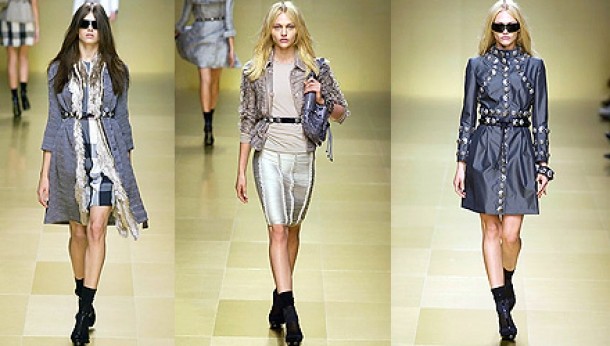 Burberry a surprins anul acesta cu o colectie mai sexy ca niciodata. Inspirat de cultura heavy-metal a anilor ’80, designerul casei de moda, Christopher Bailey reinvie spiritul femeii hotarate. Predomina rochiile din sifon impodobite cu accesorii metalice, fustele din organza cu detalii army, mantourile subtiri si lejere in culori pastelate. Piesa de rezistenta a colectiei este cureaua de piele incrustata cu medalioane militare, prinsa exact pe talie.