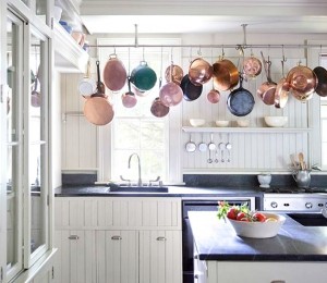Dacă eşti atrasă de decorul industrial, poţi integra cu uşurinţă oalele de cupru în bucătăria ta atunci când ai pereţii vopsiţi cu alb. Vei observa de îndată că albul pereţilor îţi va face oalele să strălucească la propriu şi le va scoate în evidenţă, transformându-le în punctul focal al universului tău gastronomic.