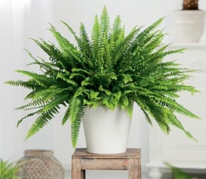 Una dintre cele mai populare plante decorative, această ferigă este un umidificator natural, curăţă şi purifică aerul de formaldehide şi alte toxine. Se spune că e cea mai bună plantă de purificare a aerului. Feriga înfloreşte la lumină puternică dar tolerează şi lumină mai difuză.