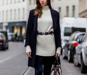 Puloverele supradimensionate sunt purtate în iarna 2016-2017 cu o centură care subliniază talia.