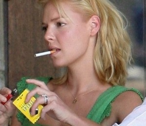 Katherine Heigl este si ea una dintre vedetele de la Hollywood dependente de nicotina, fiind adesea surprinsa cu o tigara in mana.