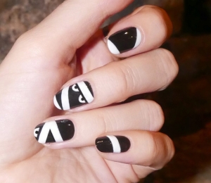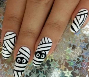 Dacă vrei o manichiură ceva mai diferită, poţi opta pentru un model de unghii pentru Halloween cu mumii sau schelete.
