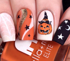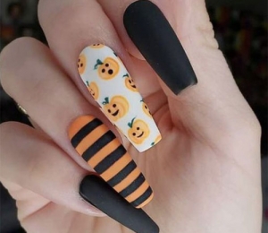 Dovlecii sunt simbolul acestei sărbători, aşa că de ce să nu-i pictezi pe unghii, pentru o Manichiură de Halloween haioasă sau horror, în funcţie de preferinţe.
