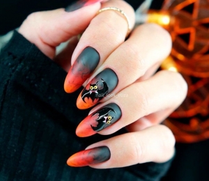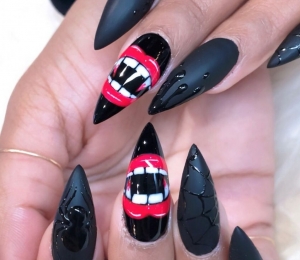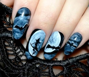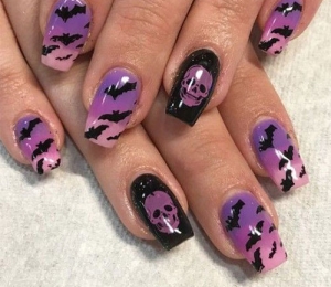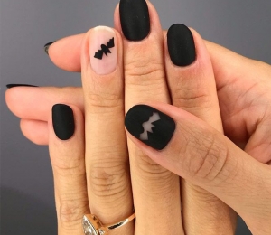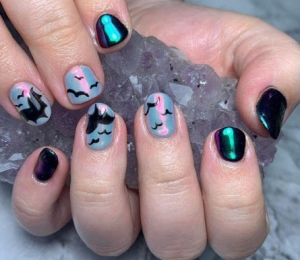 Fie că alegi ca bază unghiile negre, mov, porticalii sau un lac metalic, un model de manichiură de Halloween cu lilieci nu va trece neobservat. Se pretează şi la unghii scurte, dar şi la cele lungi, indiferent de forma pe care o preferi.