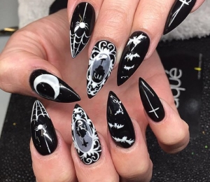 Unghiile de vrăjitoare sunt o variantă pe care o poţi alege ca să mergi la sigur, dar poţi să găseşti în galeria foto de mai jos 50 de idei diferite de manichiură pentru un Halloween reuşit.