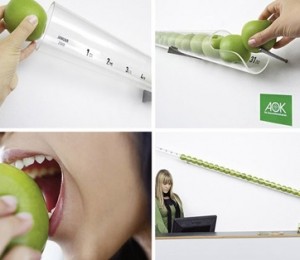 Se spune ca un mar pe zi tine doctorul departe, asa ca iti poti aminti sa-l consumi zilnic cu ajutorul unui calendar inedit. In tubul numerotat poti introduce atatea mere cate zile are luna respectiva, golindu-l pe zi ce trece.