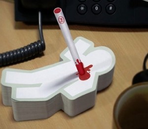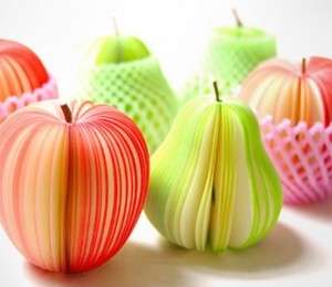 Fa-ti colegii sa zambeasca oferindu-le un post-it in forma de frunze de Gingko, planta cunoscuta pentru imbunatatirea capacitatii de concentrare si memorare. Exista numeroase variante, unele mai amuzante decat celelalte. Spre exemplu, fructe formate din felii de hartie, precum cele din galeria foto. Poti, de asemenea, sa optezi pentru o serie de biletele in forma de om, patrunse de un pix rosu, cu urme de sange pe fiecare. Putin cam morbid, dar cu siguranta inedit!