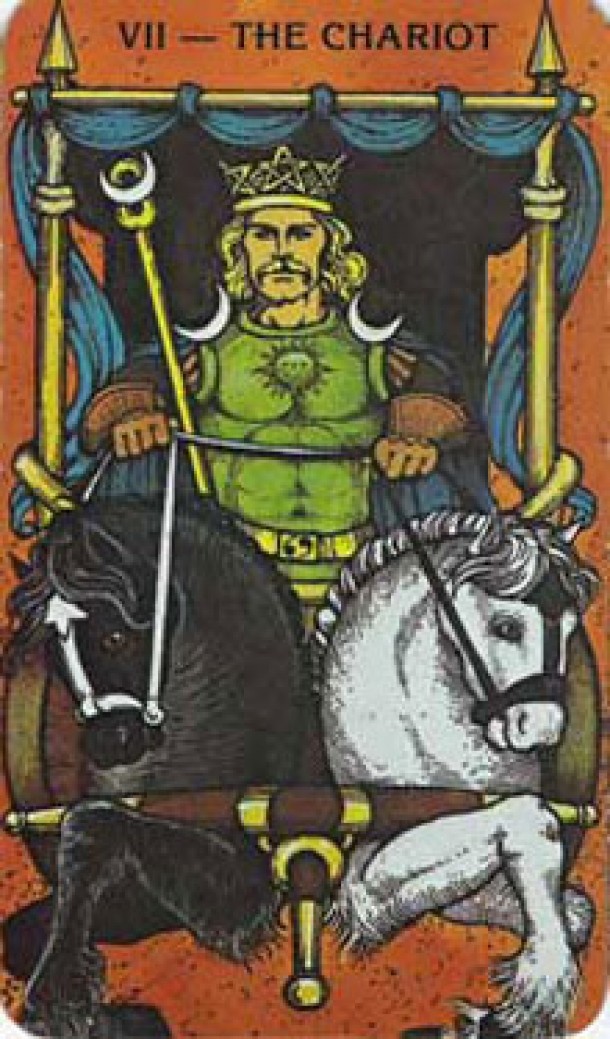Cartea simbolizeaza confruntarile din timpul vietii iar creaturile inhamate la car reprezinta vointa noastra de a iesi invingatori. Mesajul devine astfel clar: prin vointa, perseverenta si incredere putem depasi orice obstacol. Cartea are asadar o conotatie pozitiva, amintindu-ne ca prin darurile cu care am fost inzestrati de divinitate putem sa iesim victoriosi chiar si din cele mai grele batalii. Totodata, cartea poate transmite un alt mesaj la fel de important: este nevoie de indemnare si de putere pentru a manevra un vehicul atat de maret.