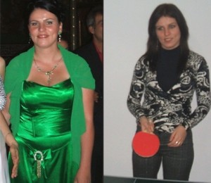 "Nu ne permiteam sa ne facem un abonament la sala pentru a face sport, astfel ca ne-am indreptat atentia spre alimentatie; a fost mai simplu asa. Ne-am hotarat sa nu mai cumparam alimente si gustari nocive (pizza, hamburgeri, snack-uri). Asa ca am achizitionat o multime de de legume verzi, carne slaba (in general pui si peste) si am inceput sa gatim acasa, cat mai natural. Ne faceam sandwich-uri numai cu paine din cereale integrale si iaurt pentru pachetelul de la munca, si am incetat sa mai mancam in exces si dezorganizat. Ne-am impus niste limite! Punctul culminant al nostru in privinta slabitului a fost in momentul in care am accelerat un pic ritmul, introducand si un pic de activitate fizica (in general plimbari lungi), constatand o scadere in greutate de 5 kilograme in 3 saptamani. Poate ca pentru unii nu inseamna o scadere rapida, dar am invatat ca slabitul sanatos necesita timp indelungat si multa rabdare. Plus de asta, nu am tinut o dieta exacta, stricta, ci doar am schimbat putin stilul alimentar si am trecut de la stadiul de sedentar, la moderat activ."