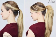 La început, strânge-ţi părul într-o coadă de cal, apoi separă partea superioară (aproximativ un sfert din păr) de restul cozii şi fixeaz-o cu o clamă. Aranjează firele astfel încât să acopere platicul sau metalul clamei. Acest truc îţi va dubla volumul.