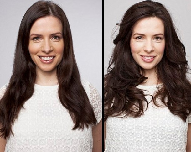 In prima fotografie (stanga), o puteti vedea pe Kate in prima zi, dupa ce abia si-a spalat parul, fara sa il usuce cu foen-ul, pentru a nu influenta rezultatul.