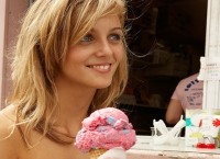 3. Se feliază al patrulea kiwi și se pun câte două felii în fiecare formă de acadea/înghețată (câte una pe fiecare margine a formei), apoi se toarnă amestecul obținut anterior și se dau la congelator.