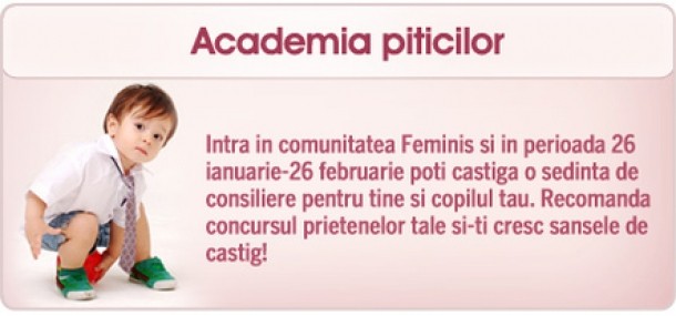 Intra pe http://www.feminis.ro/forum/sarcina-si-copii/proaspete-mamici/, in dialog cu Cristina, si poti fi una dintre castigatoarele unei sedinte de consiliere pentru tine si copilul tau!