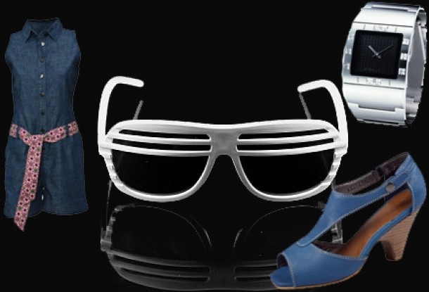 Solutii de asortare:Cu un asemenea design inedit, nu trebuie sa-ti incarci look-ul pentru a scoate in evidenta doar piesa de rezistenta: ochelarii. De aceea poti opta pentru un stil minimalist, insa curat si cu putina culoare: un ceas Police (471 lei), salopeta denim Flo&Jo (159 lei) si sandale albastre de la Reserved (209 lei).
