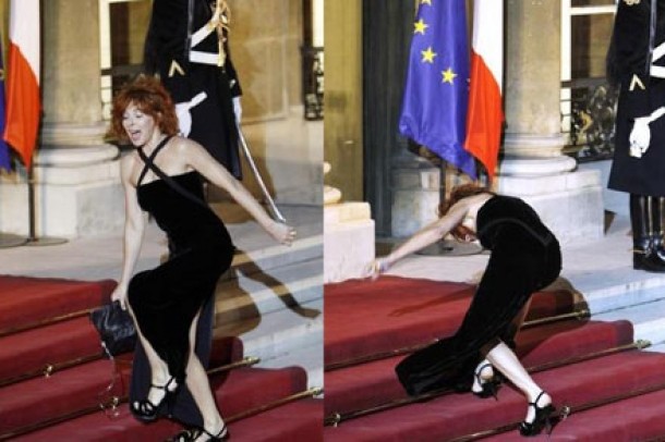 Cu siguranta asta s-a intamplat si cu Mylene Farmer, cantareata franceza care a cazut pe scarile palatului Elysee, acolo unde era invitata de presedintele francez Nicolas Sarkzoy si sotia sa, Carla Bruni, la un dineu organizat in cinstea presedintelui rus Dmitry Medvedev si a sotiei.