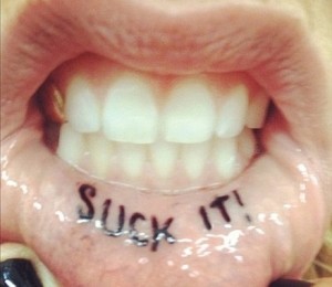 Cantareata si-a tatuat fraza "suck it", o replica pe care o foloseste frecvent atunci cand primeste comentarii negative. Imediat dupa ce opera a fost realizata a postat pe contul personal de Twitter o fotografie pentru fanii ei.