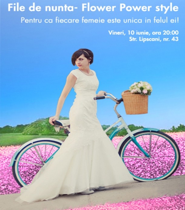 "File de nunta- Flower Power Style" este al doilea eveniment dintr-o serie de cinci astfel de intalniri dedicate viitoarelor mirese. Evenimentele sunt realizate cu sprijinul make-up artistului si hair stylist Sorina Nedelcu si Casei de Moda Christian Philippe.