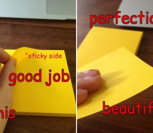 Iar de acum, post-it-ul tău va sta perfect şi va fi plat când îl vei lipi pe o suprafaţă. Sursa.