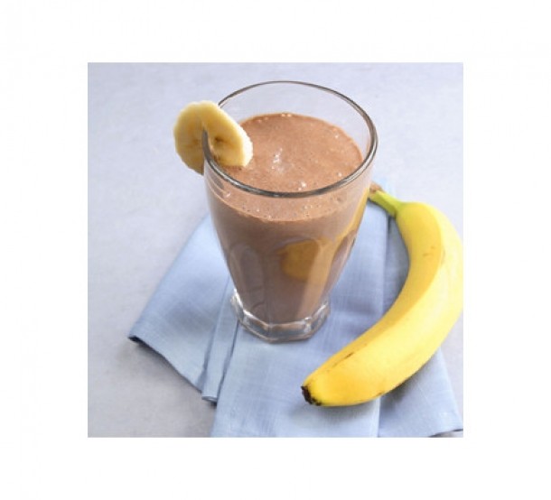 Ai nevoie de: 1 banana, 1 pahar de lapte de soia, 2 linguri de cacao, 1 lingura de miere.