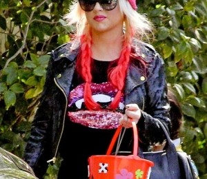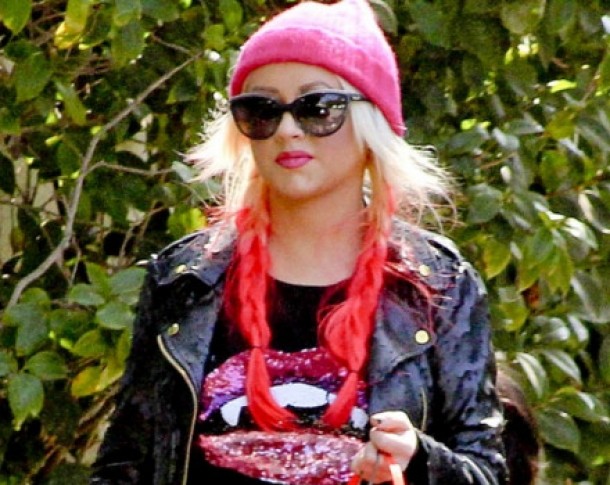 Cantareata in varsta de 31 de ani si-a facuta aparitia purtand o pereche de leggings negri cu un imprimeu cu cranii, o jeaca de piele si un tricou negru. A completat look-ul mai mult decat exagerat cu o caciula roz si o pereche de ochelari. Coafura pare sa fi fost si ea aleasa in conformitate cu outfitul trasnit si Christina a ales sa isi faca doua codite impletite.