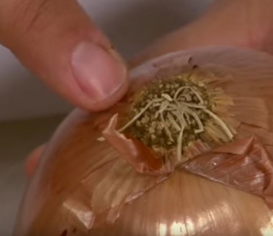Taie de jur împrejurul rădăcinii şi îndepărtează această porţiune, aşa cum poţi observa în imaginea de mai jos, întrucât conţine substanţele care declanşează lăcrimarea.