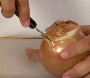 Ideal ar fi să introduci cuţitul până ajungi la 1/3 din dimensiunea cepei, pentru a fi sigură că obţii rezultatul dorit.