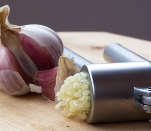 Mai mult ca sigur cureţi usturoiul de coajă şi abia apoi îl zdrobeşti cu ajutorul presei. De fapt, ar trebui să introduci căţelul de usturoi cu tot cu coajă în presă.